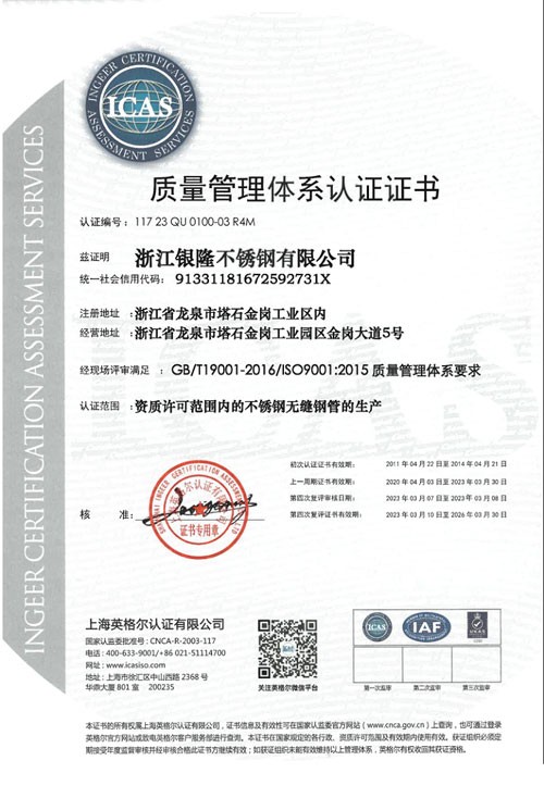 浙江銀隆不銹鋼有限公司創始于2006年,是一家專業生產不銹鋼無縫管的企業。公司位于浙江麗水市,企業注冊總資金貳億壹仟柒佰肆拾玖萬元,擁有4家工廠,占地總面積11萬平方米,職工530人,年產不銹鋼無縫管5萬噸。